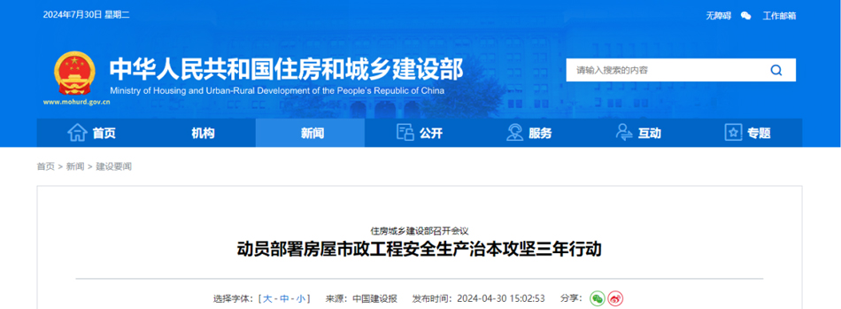 2024年4月,住建部召開房屋市政工程安全行動部署會議。會議強調(diào),各地要突出重點精準施策,準確把握治本攻堅三年行動的目標任務(wù)。一是健全施工安全事前預(yù)防機制。建立隱患排查和責任倒查機制,推動重大事故隱患動態(tài)清零,提升危大工程安全管控水平。二是構(gòu)建施工安全數(shù)字化監(jiān)管體系.......等。