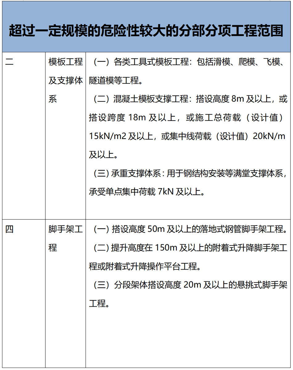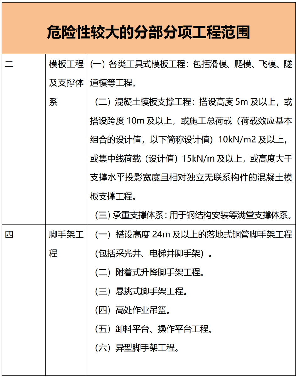 2018年5月,住房城鄉(xiāng)建設(shè)部辦公廳發(fā)布“關(guān)于實施《危險性較大的分部分項工程安全管理規(guī)定》有關(guān)問題的通知”明確危大工程范圍。