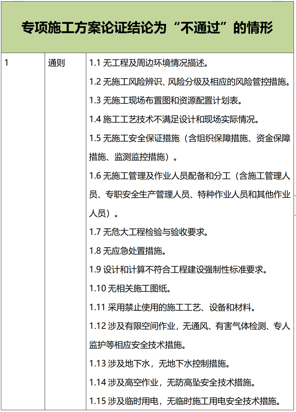 2023年6月,住房和城鄉(xiāng)建設(shè)部工程質(zhì)量安全監(jiān)管司關(guān)于《危險性較大的分部分項工程專項施工方案專家論證管理辦法(征求意見稿)》公開征求意見的通知。附件“專項施工方案論證結(jié)論為“不通過”的情形”。
